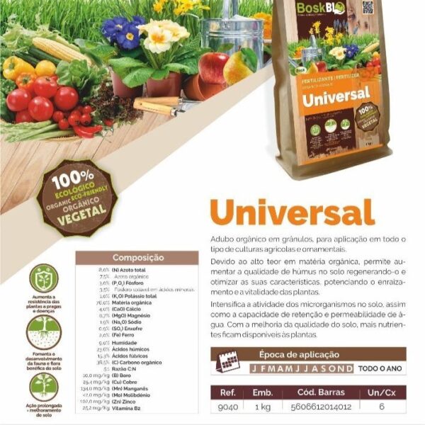 100% organic granulated fertilizer, made from plant-based by-products, with long-lasting effects and soil-improving properties. Ideal for fertilizing all types of home vegetable gardens and gardens, ornamental plants and lawns. With high organic matter content that improves the humus content in the soil and optimizes its physical and biological properties. Balanced formula, enriched with biostimulants, improves water retention capacity, ensuring complete and effective care.