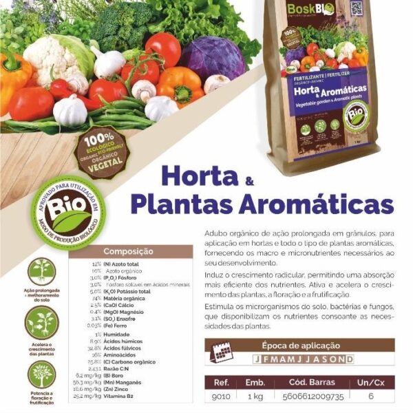 100% organic slow-release granular fertiliser, ideal for vegetable gardens and aromatic herbs. Rich in organic matter, it stimulates soil microbial life, promotes root growth and provides essential nutrients for healthy development, boosting flowering and fruiting, and is suitable for organic farming.