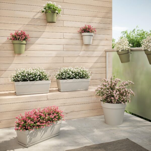 Recycled plastic balcony pot kit, made from polypropylene, lightweight, strong and durable, recyclable and reusable. Suitable for balconies, with a 4 L capacity. Made in Portugal.