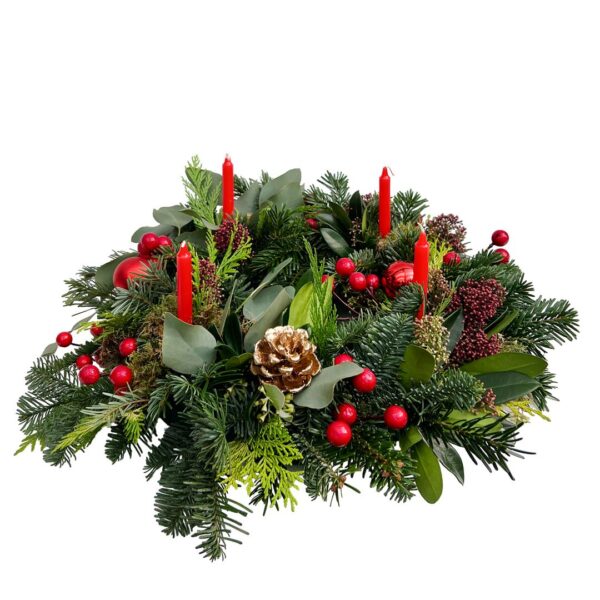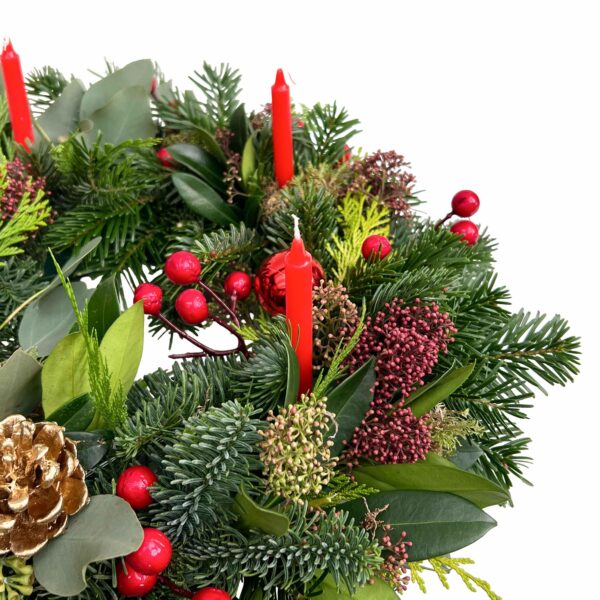 Arranjo de Natal natural com velas (30cm diâmetro)