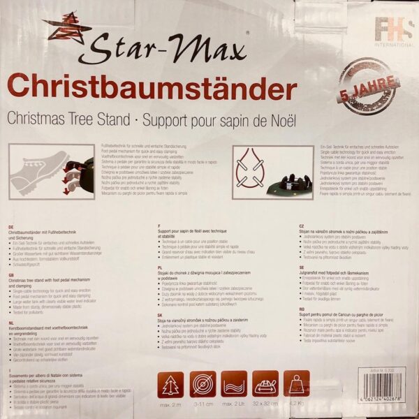 – Feito de plástico, de tom verde, de alta resistência e criado para dar estabilidade e segurar bem a sua árvore cortada.