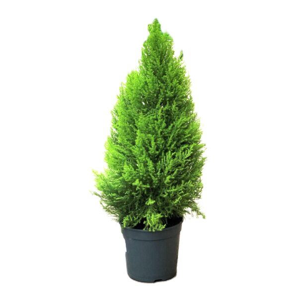 Esta é uma planta para ter no exterior, que não exige muita manutenção e não cresce acima dos 4 metros de altura. É muito ornamental, devido à sua coloração verde/cítrica e forma piramidal, e ao passar a mão nesta pequena conífera, vai sentir um agradável aroma a limão, pelo que é uma perfeita para decorar pequenos jardins, terraços/alpendres ou varandas. No inverno, a folhagem mantém o seu brilho com uma boa exposição solar, contudo, é algo frágil e deve colocá-la em zonas que, no verão, não sejam demasiado expostas ao sol nas horas de maior calor, sob risco de secar. Poderá, eventualmente, tê-lo num espaço interior, desde que o mesmo tenha uma boa exposição solar e adequado arejamento. Não produz flores visíveis nem frutos significativos.