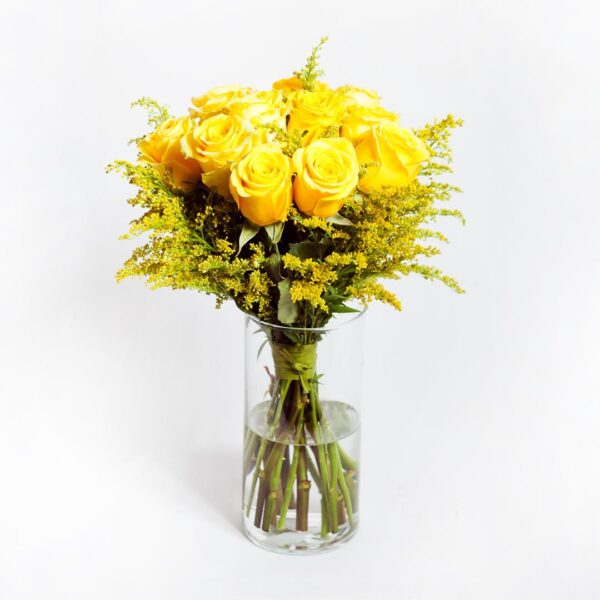 O Ramo Sunshine, com 24 rosas amarelas envolvidas em verduras frescas, é um banho de Amarelo. Destina-se especialmente a amantes de amarelo. Conhece alguém assim? Ofereça este Ramo de Rosas e garantidamente que vai fazer nascer um sorriso na cara de quem as receber! O ramo desperta a energia e a alegria de qualquer um! Ofereça este ramo a alguém a quem pretende desejar um bom dia com alegria.