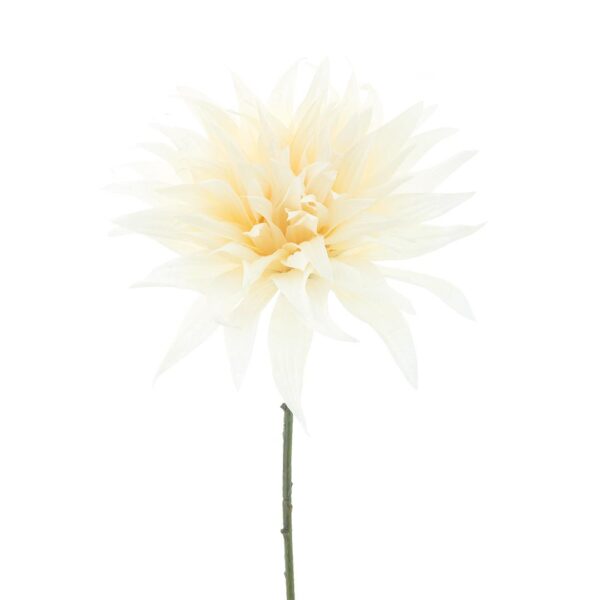 Este pé de Dália (reprodução da variedade ‘Texas’ – cuja característica consiste no tamanho, maior, da flor), pintado a spray em tom branco, é um elemento ideal para compor as suas decorações e arranjos ao longo de todo o ano. Sendo a Dália uma flor versátil, combina com qualquer celebração/efeméride e ficará bem em qualquer bouquet, jarra, centro de mesa ou decoração que lhe ocorra fazer.