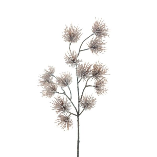 Pintado a spray que reproduz efeito gelado, este ramo é uma representação fiel de um exemplar que se pode encontrar na natureza. É um elemento essencial para compor qualquer decoração ou arranjo de Natal.