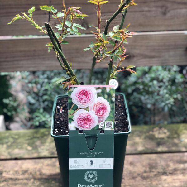 Com o seu crescimento vigoroso e de porte vertical, esta roseira trepadeira, é uma excelente decoradora de muros e fachadas. As suas flores, de beleza marcante, apresentam um tom rosa médio no centro, que se torna gradualmente mais claro em direção às bordas. As numerosas pétalas, dispostas de forma cuidada em cada flor, criam uma forma ligeiramente abobadada. Recebeu o nome do flautista britânico, de renome internacional, para celebrar o seu 60.º aniversário. James Galway encantou os visitantes do espaço da Casa David Austin, no Chelsea Flower Show, ao tocar flauta aquando do lançamento desta roseira pelo que o nome da mesma só podia ser este.