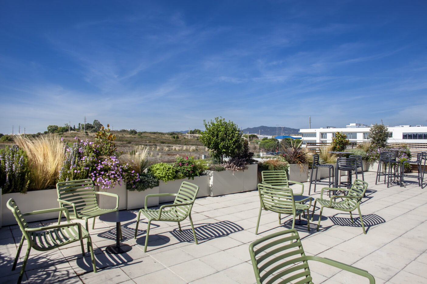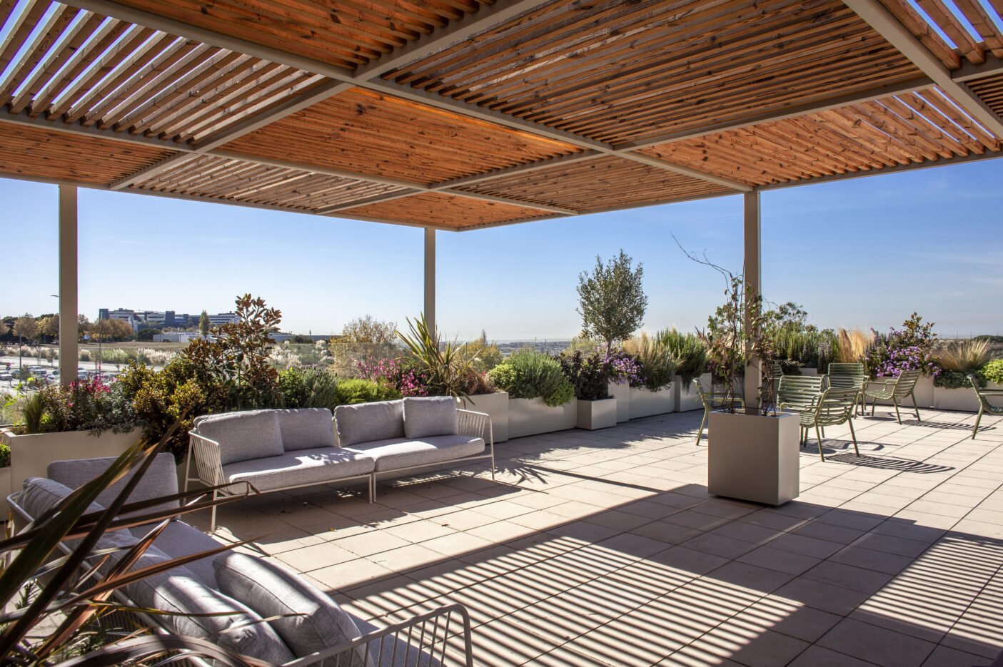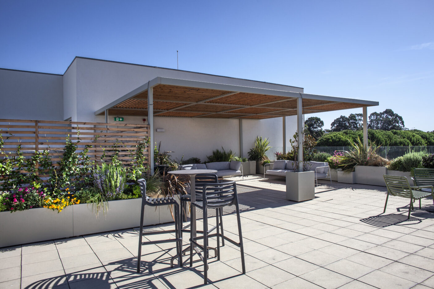 Neste novo rooftop, com 200 m², o Horto do Campo Grande foi responsável pela execução das soluções paisagísticas e técnicas, criando um ambiente verde, confortável e coeso, que convida à pausa e à partilha de momentos entre colaboradores.