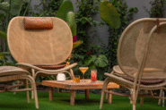 Nos espaços interiores, vasos de design contemporâneo receberam espécies tropicais e de elevada resistência, como Strelitzia nicolai, Kentia forsteriana e Zamioculcas zamiifolia. O jardim interior combina Ficus benjamina, Monstera deliciosa e Philodendron xanadu, formando um cenário verde e luminoso que convida à pausa.