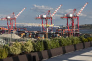 Grande parte das plantações foi realizada em floreiras Horto Collection de chapa galvanizada com acabamento anticorrosão, garantindo durabilidade e integração estética.